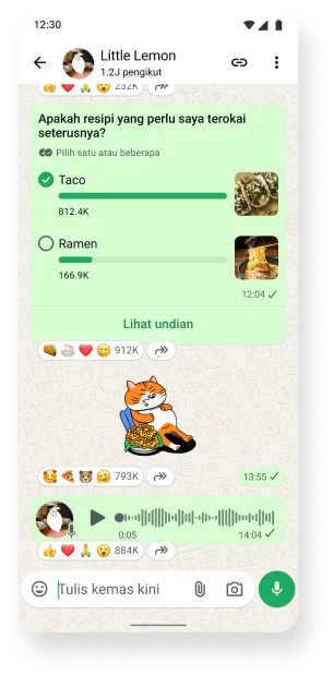 Letakkan pelekat tersuai yang boleh dimuat turun oleh khalayak anda, hantar mesej suara untuk berkongsi berita atau gunakan tinjauan untuk menjemput pengikut agar berkongsi pendapat mereka.