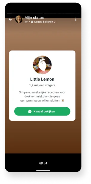 Deel je kanaallink of unieke QR-code in je Status en in persoonlijke chats, zodat meer mensen je kanaal kunnen vinden.