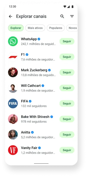 Os Canais do WhatsApp são uma forma simples e privada de receber atualizações úteis das pessoas e organizações que mais lhe interessam.