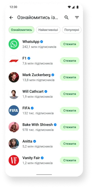 Канали WhatsApp – це простий і конфіденційний спосіб отримувати корисні оновлення від людей та організацій, які вам небайдужі.