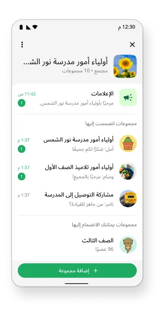 تتيح مجتمعات واتساب إمكانية الجمع بين المجموعات المرتبطة تحت مظلة واحدة حتى يتمكن المشرفون بسهولة من تنظيم الدردشات الجماعية والوصول إلى جميع الأعضاء دفعة واحدة من خلال مجموعة الإعلامات، وإجراء محادثات مركّزة وهادفة.