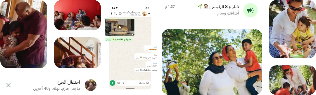 سواء كنت تجري دردشات يومية مع أصدقائك المقربين أو متابعات دورية مع زملائك في العمل، ستساعدك المراسلة في مجموعات واتساب على البقاء على تواصل مع جميع من تعرفهم. التطبيق مجاني* ويتمتع بالخصوصية ويقدم لك الخصائص التي تحتاج إليها لإجراء محادثات أسهل بإنتاجية أكبر.