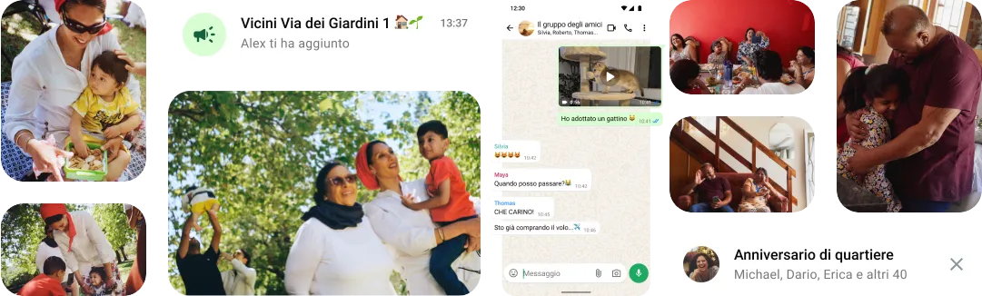 Dalle chat quotidiane con gli amici più stretti agli scambi con i colleghi, i messaggi nei gruppi WhatsApp ti aiutano a rimanere in contatto con tutti. Sono gratuiti*, privati e offrono le funzioni necessarie per rendere le conversazioni più semplici e produttive.