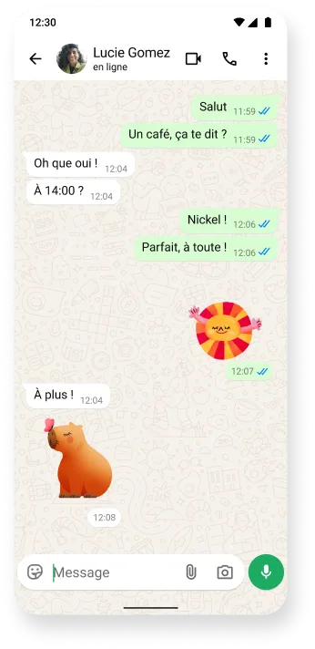 Laissez parler votre créativité avec des stickers, des avatars et des GIF consultables et personnalisables.