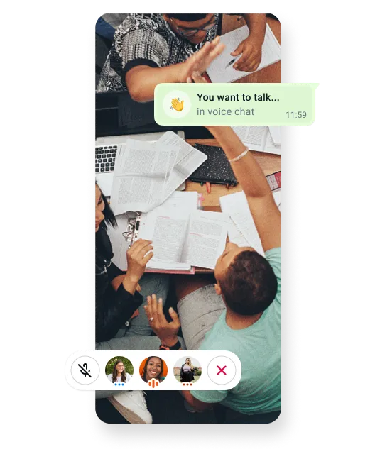 Ljudmöten för grupper i alla storlekar. Ibland måste man bara prata med någon som är tillgänglig i gruppchatten, oavsett om det handlar om en nagelbitande fotbollsmatch, problem med läxorna eller om man vill dela viktiga nyheter.