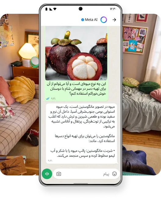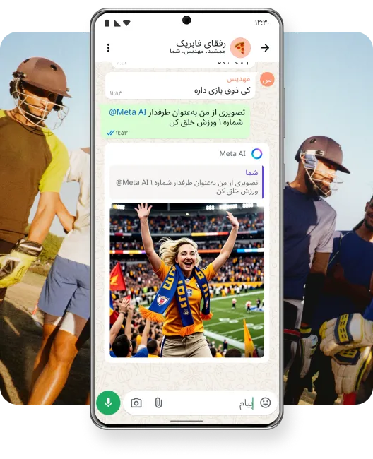 ایدههایتان را با کمک هوش مصنوعی Meta به واقعیت تبدیل کنید — عکسهایتان را ویرایش کنید یا تصاویر جدیدی با هوش مصنوعی بسازید تا بهعنوان نماد گروه استفاده کنید، پسزمینه تماس تصویریتان قرار دهید، یا در گپ ارسال کنید.