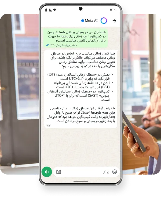 هوش مصنوعی Meta آماده کمک است و روشهای زیادی برای استفاده از آن وجود دارد — چه مستقیماً در گپ درخواست دهید، چه دیگر تجربههای هوش مصنوعی موجود در واتساپ را کشف کنید.