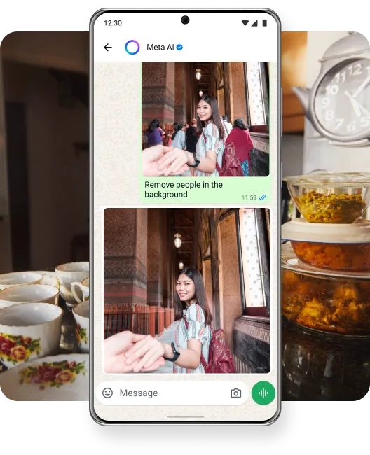 사진을 원하는 모습으로 꾸며보세요. Meta AI에 새로운 배경 추가, 사물 삭제, 그림으로 만들기 등의 작업을 요청하세요.