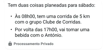 Quando as mensagens não lidas começam a acumular-se, a Meta AI pode ajudar a resumi-las rapidamente para que possa voltar à conversa. A tecnologia Processamento Privado permite à Meta AI processar as suas mensagens sem que a Meta ou o WhatsApp as possam ler.