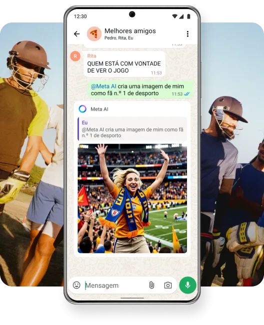 Desde coordenar facilmente um encontro com os seus amigos até criar imagens para partilhar na conversa de grupo, a Meta AI oferece-lhe ajuda facilmente em tudo o que precisar, com a segurança e a privacidade do WhatsApp.