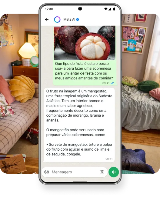 A Meta AI está pronta para ajudar e existem muitas formas de a usar, quer pergunte diretamente na conversa ou explore outras experiências de IA no WhatsApp.