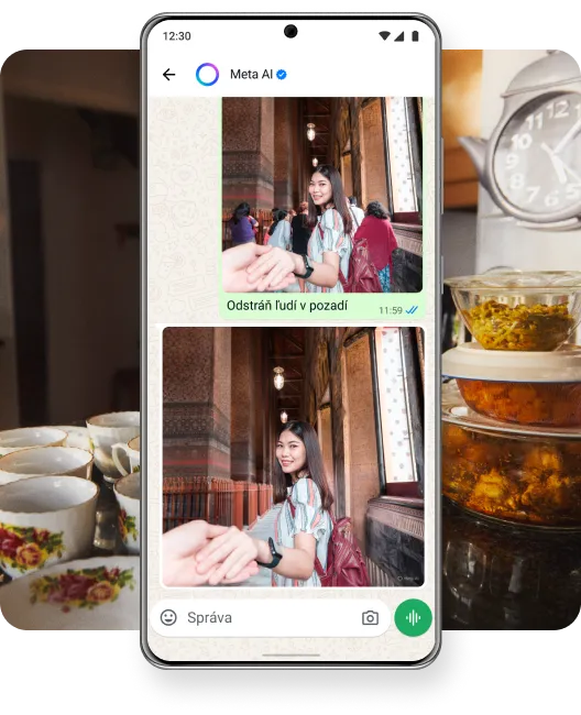 Vdýchnite svojim nápadom život za pomoci Meta AI. Upravte existujúce fotky alebo vytvorte nové obrázky generované umelou inteligenciou, ktoré budete môcť nastaviť ako ikonu skupiny či pozadie vo videohovore alebo odoslať v chate.