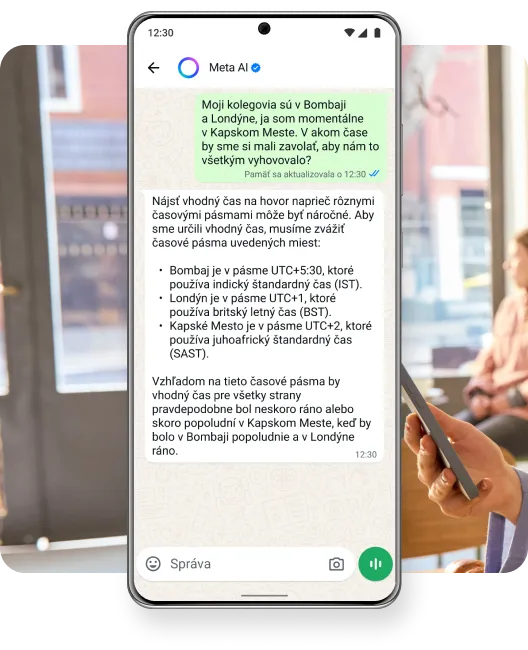 Či už sa chcete s priateľmi rýchlo dohodnúť na stretnutí, alebo vytvoriť obrázok, ktorý nazdieľate do skupinového chatu, Meta AI vám so všetkým raz-dva pomôže – v bezpečnom a súkromnom prostredí aplikácie WhatsApp.