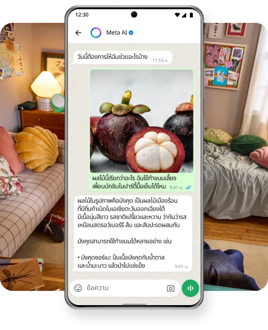 Meta AI พร้อมช่วยเหลือคุณได้หลากหลายวิธี ไม่ว่าคุณจะถามในแชทโดยตรงหรือลองใช้ประสบการณ์ AI รูปแบบอื่นๆ ใน WhatsApp