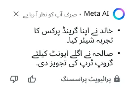 Meta AI مدد کیلئے تیار ہے، اور اسے استعمال کرنے کے کئی طریقے موجود ہیں—چاہے آپ چیٹ میں ہی پوچھیں یا WhatsApp میں دوسرے AI تجربات کو ایکسپلور کریں۔