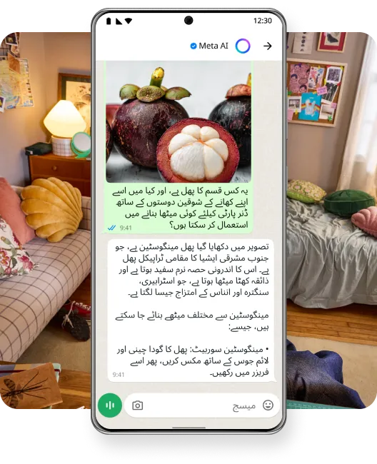 چاہے آپ نے کسی پودے کی تصویر کھینچی ہو جسے آپ نہیں پہچانتے یا ریاضی کے کسی مسئلے کو سمجھنے میں مدد چاہیے، Meta AI استعمال کریں اور اپنی تصویروں میں موجود چیزوں کے بارے میں جانیں۔