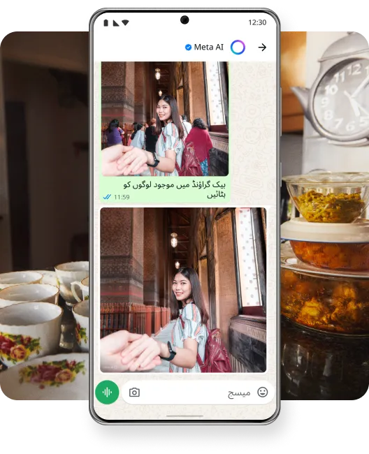 اپنی تصویر کو بالکل ویسا بنائیں جیسا آپ چاہتے ہیں۔ Meta AI سے کہیں کہ نیا بیک گراؤنڈ ڈالے، کسی شے کو ہٹائے، اسے تصویر کشی میں بدلے، اور بھی بہت کچھ کرے۔