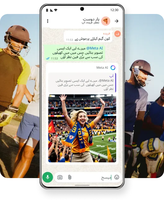 دوستوں کے ساتھ ملاقات طے کرنے سے لے کر گروپ چیٹ میں شیئر کرنے کیلئے تصاویر بنانے تک، Meta AI ہر کام کو آسان بنانے میں مدد کرتا ہے — وہ بھی یہ سب WhatsApp کی سیکیورٹی اور پرائیویسی کے ساتھ۔